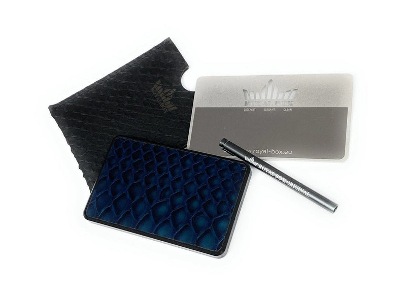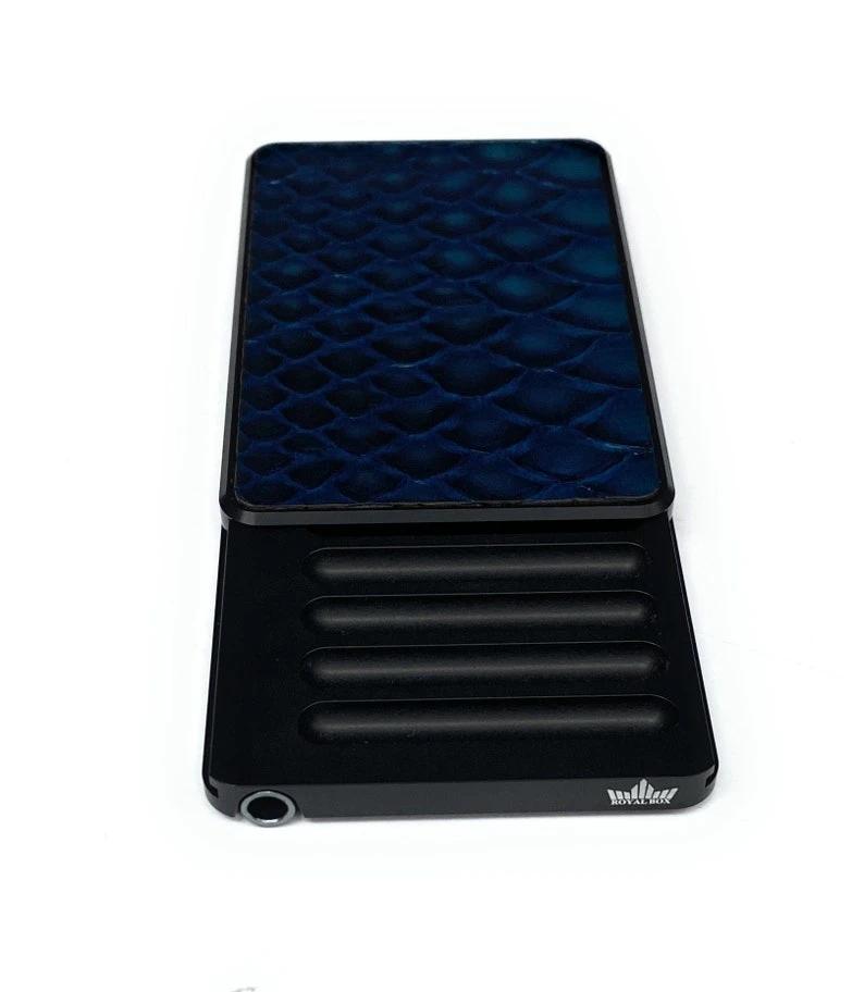 This Royal Box is made for everyone who appreciates stylish and high-quality solutions. A unique collector's item, crafted from hand-brushed, matte aluminum and genuine lizard leather in dark blue – luxurious, functional, and always at hand.
