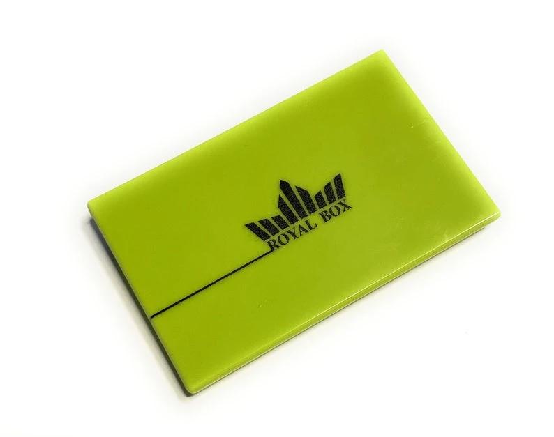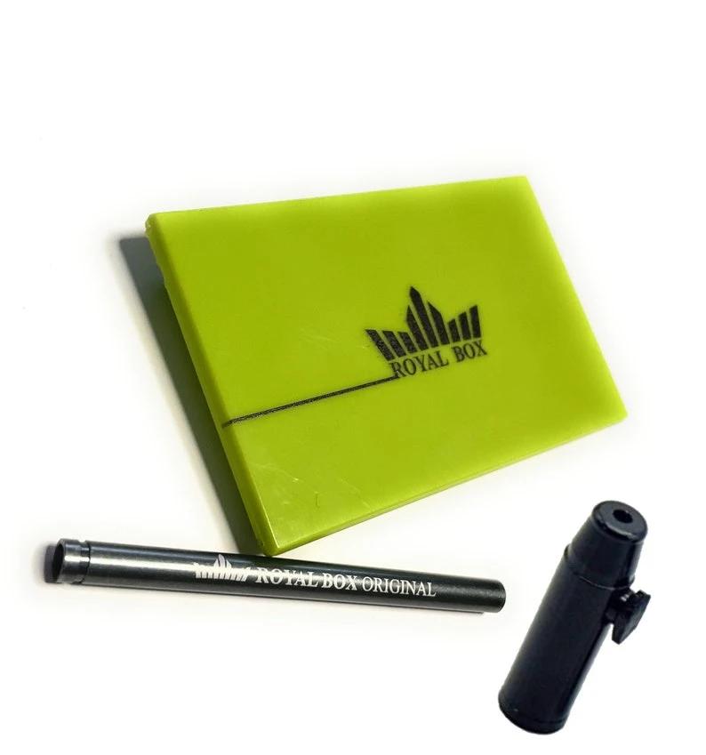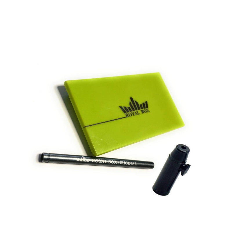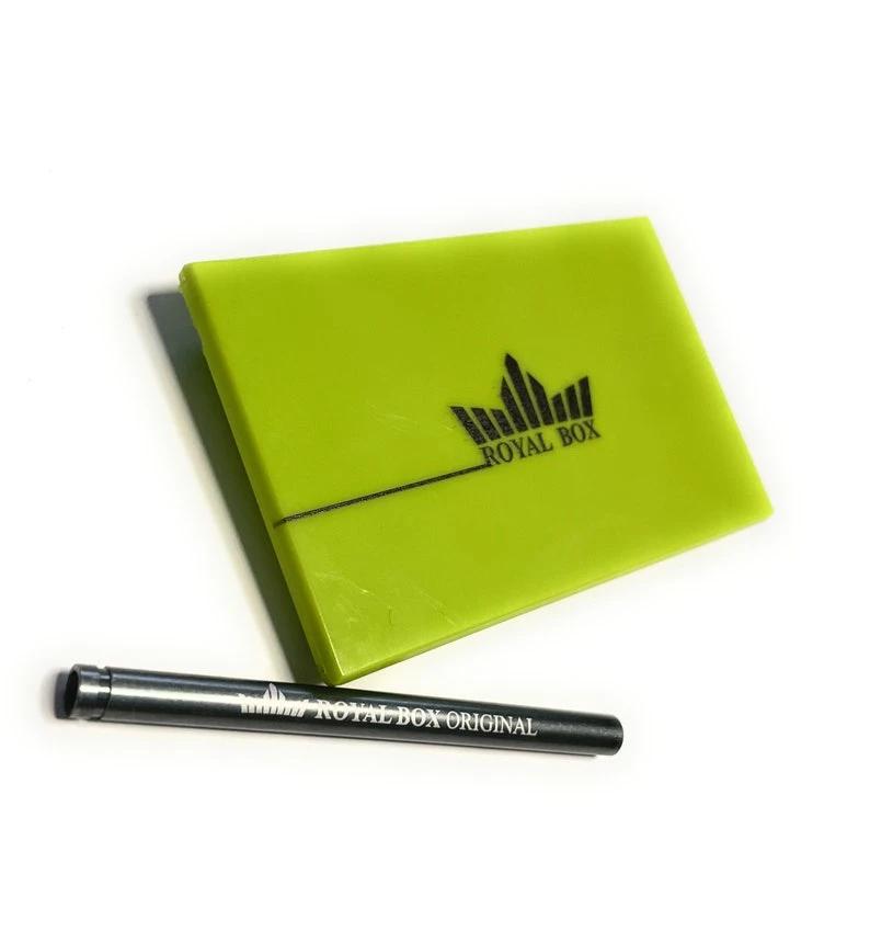 The Royal Box in green impresses with its high-quality design and practical functionality. Thanks to its compact credit card format, it fits effortlessly into any pants or wallet. The integrated tube allows for hygienic and discreet use, while the elegant material ensures durability.