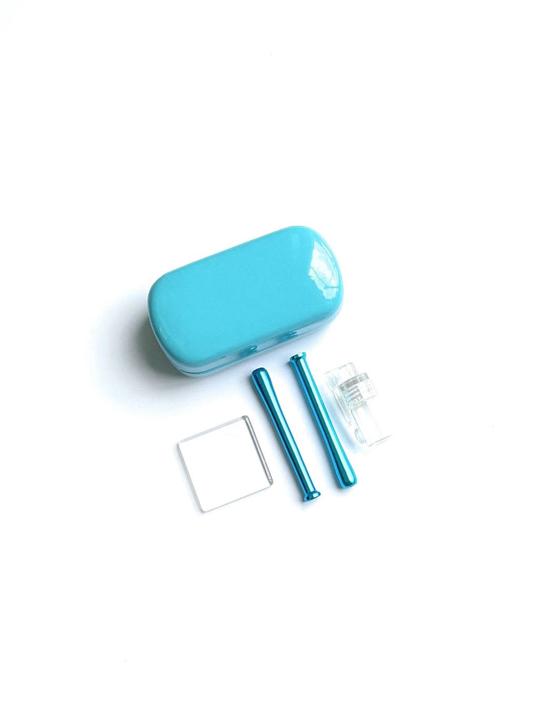 This high-quality set combines functionality with a stylish design. The hard case in light blue ensures safe storage and makes the set perfect for on-the-go. With dispenser, draw tube, and mini glass plate, you have everything compact and within reach.