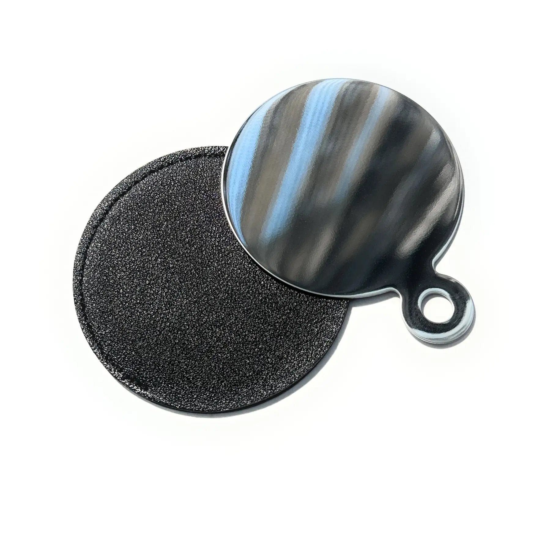 El mini-espejo en formato de bolsillo es tu compañero perfecto para llevar contigo. Gracias al práctico soporte de plástico en la parte trasera, siempre tendrás tu tarjeta Hack a mano.