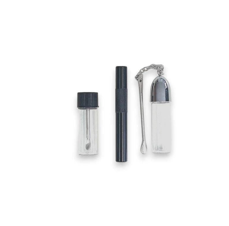 Este conjunto de alta calidad combina diseño elegante con funcionalidad práctica. La funda suave con aspecto de carbono elegante ofrece un almacenamiento seguro y proporciona una apariencia estilosa. Con dispensadores y tubos de extracción, todo está compacto y al alcance – perfecto para llevar.