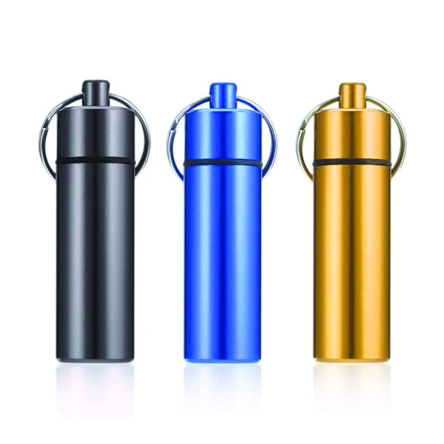 Pilulier verrouillable en aluminium comme porte-clés en bleu