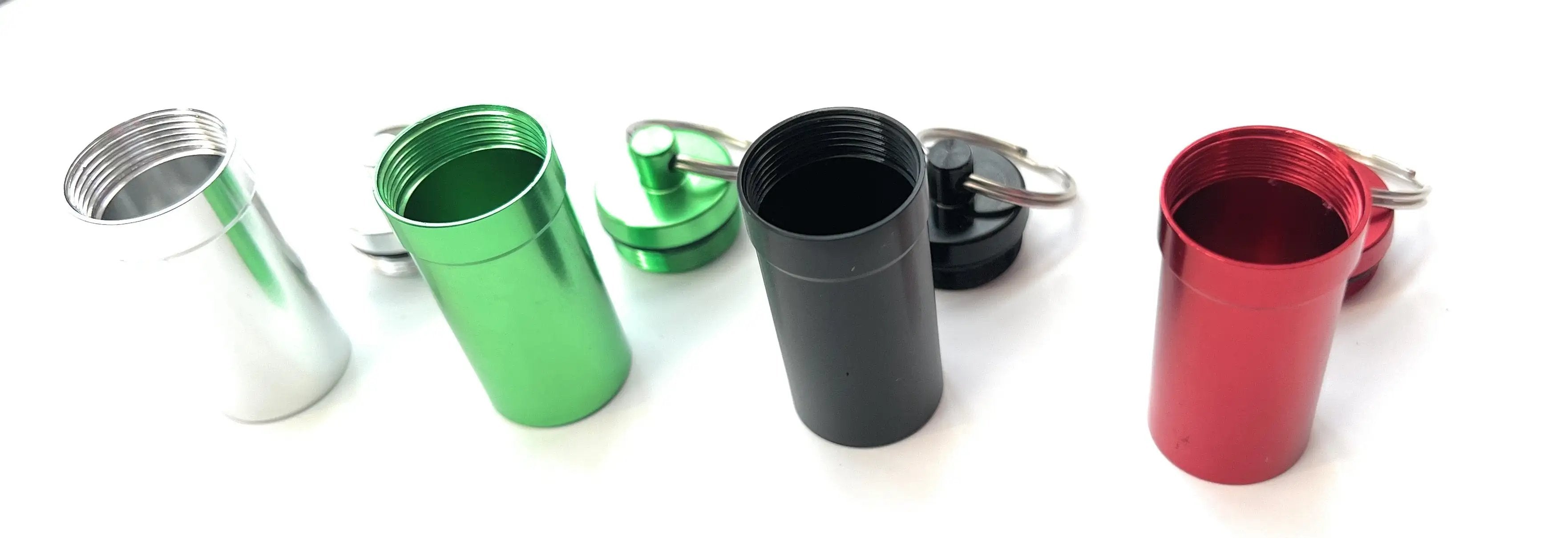 Deze hoogwaardige aluminium pillendoos is de ideale opslagoplossing voor onderweg. Dankzij de waterdichte schroefdop blijven je inhoud veilig beschermd. Met de praktische sleutelhanger heb je de doos altijd binnen handbereik – perfect voor pillen, kleine voorwerpen of accessoires.