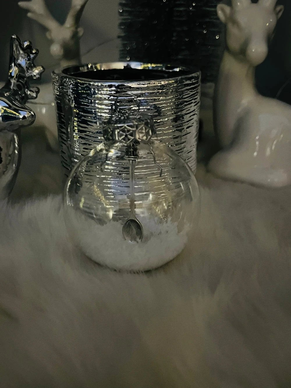 ✔ 1x Christbaumkugel (6 cm) aus Kunststoff, befüllt mit Kunstschnee & Löffel