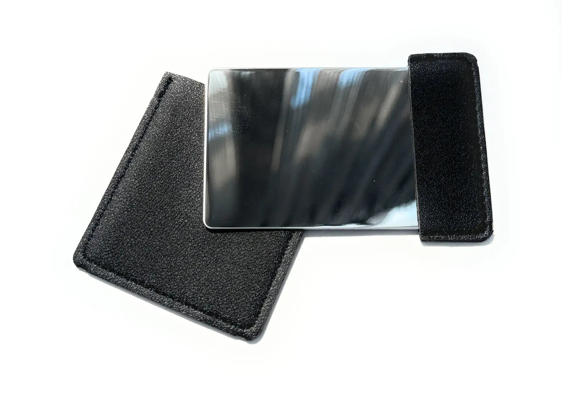 Der Mini Spiegel To-Go in schwarzer Schutzhülle ist die diskrete & kompakte Lösung für unterwegs. Passt in jede Tasche und ist immer einsatzbereit! Dank der Schutzhülle bleibt die Spiegelfläche frei von Kratzern.