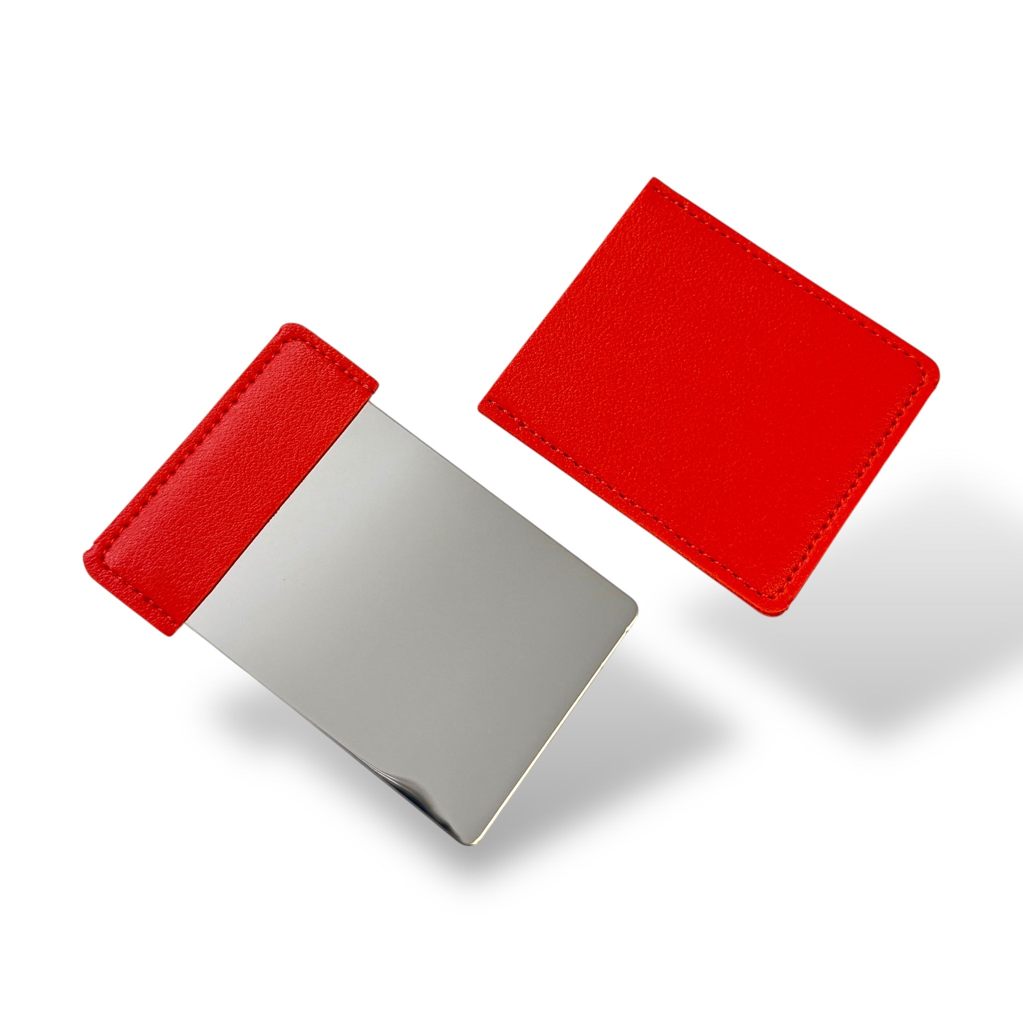 Der Mini Spiegel To-Go in roter Schutzhülle ist die diskrete & kompakte Lösung für unterwegs. Passt in jede Tasche und ist immer einsatzbereit! Dank der Schutzhülle bleibt die Spiegelfläche frei von Kratzern.
