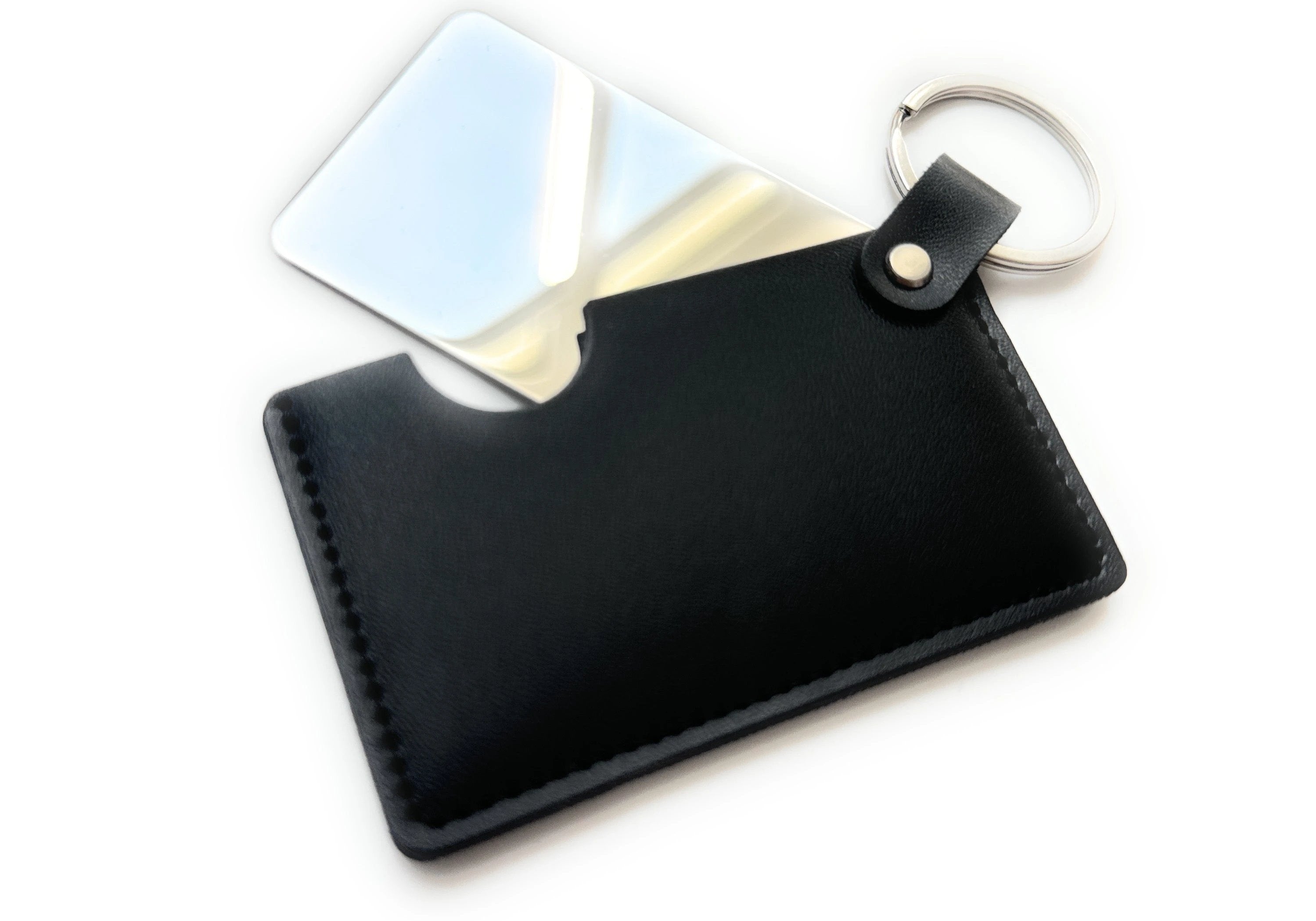 Der perfekte Begleiter für unterwegs – kompakt, diskret & immer griffbereit! Dank der schwarzen Schutzhülle bleibt die Spiegelfläche kratzfrei, und mit dem praktischen Schlüsselanhänger hast du ihn immer dabei.
