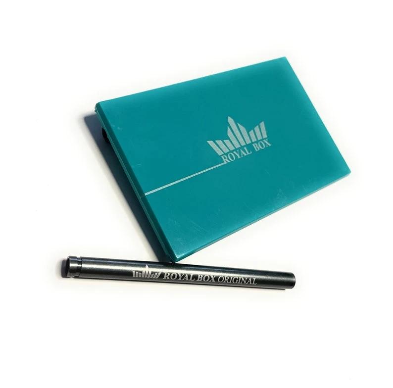 Die Royal Box in Türkis überzeugt mit ihrem hochwertigen Design und praktischer Funktionalität. Dank ihres kompakten Kreditkartenformats passt sie mühelos in jede Hosen- oder Brieftasche. Das integrierte Röhrchen ermöglicht eine hygienische und saubere Anwendung, während das edle Material für Langlebigkeit sorgt.