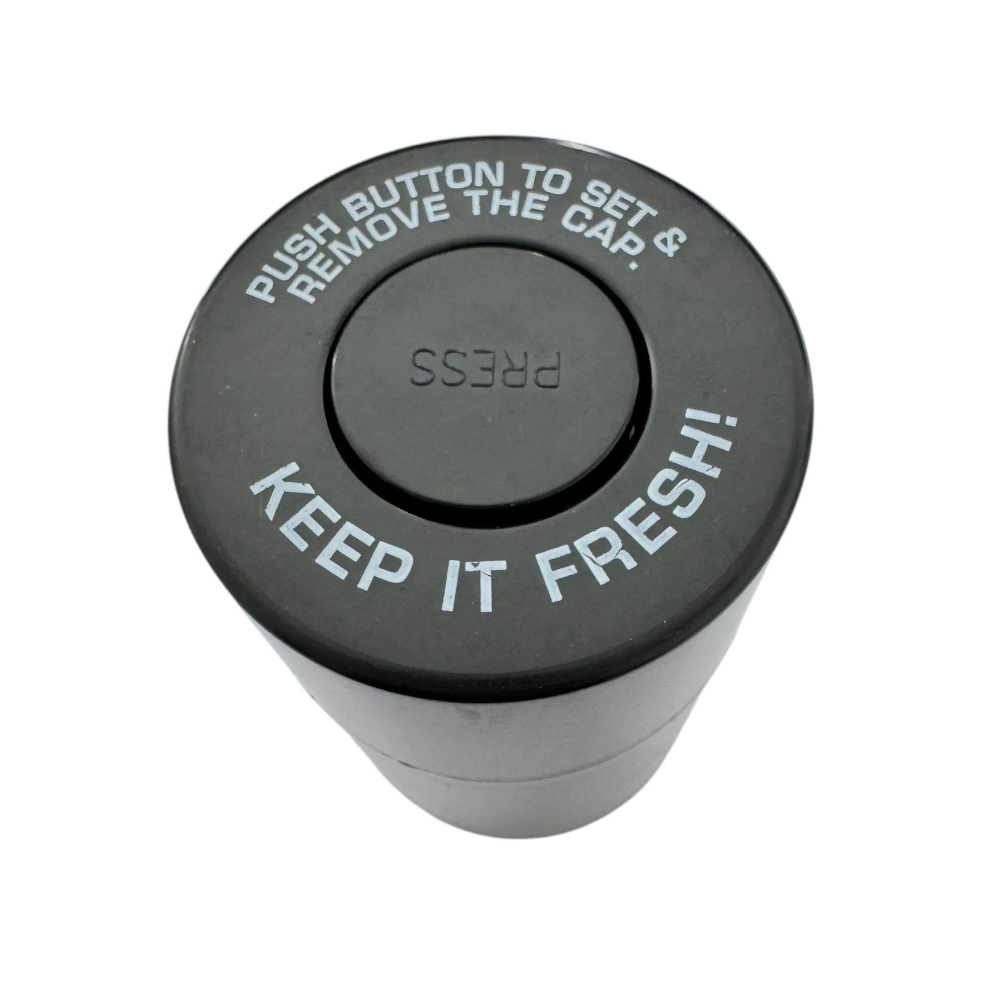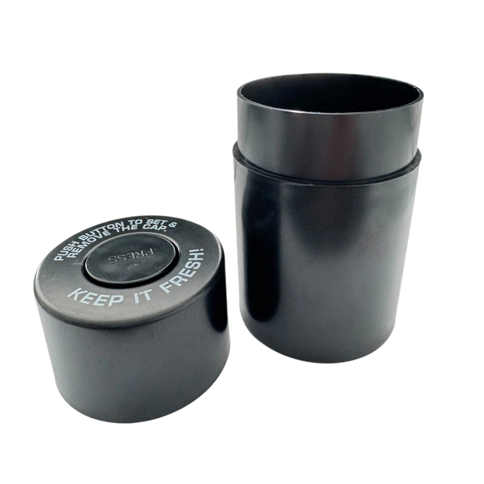 Schlicht, sicher, stylisch: Diese komplett schwarze Vakuumdose hält deine Inhalte trocken, frisch und geruchsneutral – ob unterwegs oder daheim. Der Push-Button-Verschluss sorgt für ein einfaches Öffnen und gleichzeitig luftdichten Verschluss mit Vakuumeffekt.