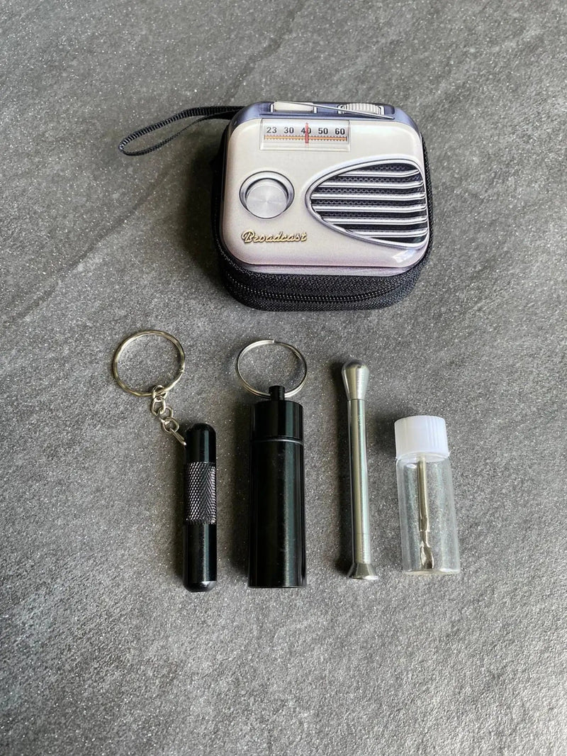 Das Set "Retro Telefon" vereint stilvolles Vintage-Design mit praktischer Funktionalität. Dank des stabilen Aluminium-Hard Cases ist dein Zubehör sicher verstaut und stets griffbereit – perfekt für unterwegs oder als stylisches Accessoire.